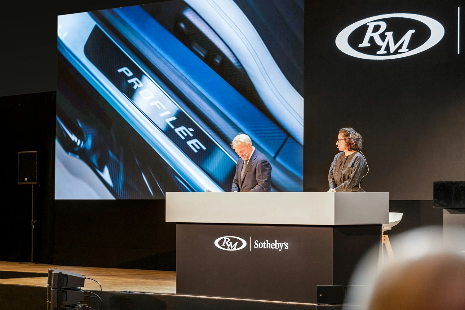 El Bugatti Chiron Profilée fue vendido directamente en subasta por RM Sotheby’s, convirtiéndose en el único Bugatti moderno vendido nuevo directamente en una subasta. Este hecho lo convierte en un automóvil histórico, ya que su primera venta ya formó parte del mercado de subastas, algo que normalmente ocurre décadas después de la fabricación.