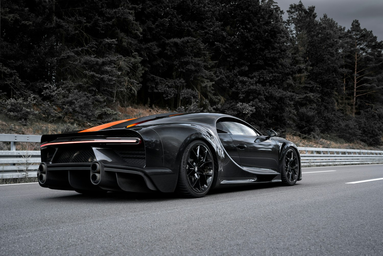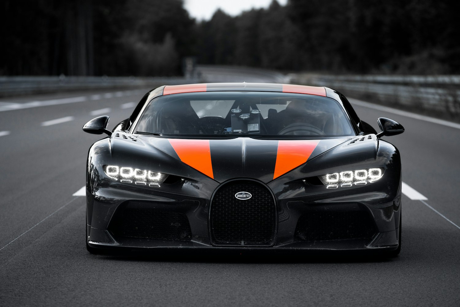 El exterior está construido en fibra de carbono vista en color negro, atravesada por la icónica franja Jet Orange, un homenaje al automóvil que logró el récord mundial. Las llantas de magnesio ultraligero y el logotipo Bugatti Macaron en plata auténtica confirman que estamos ante una edición extremadamente exclusiva limitada a solo 30 unidades en todo el mundo.