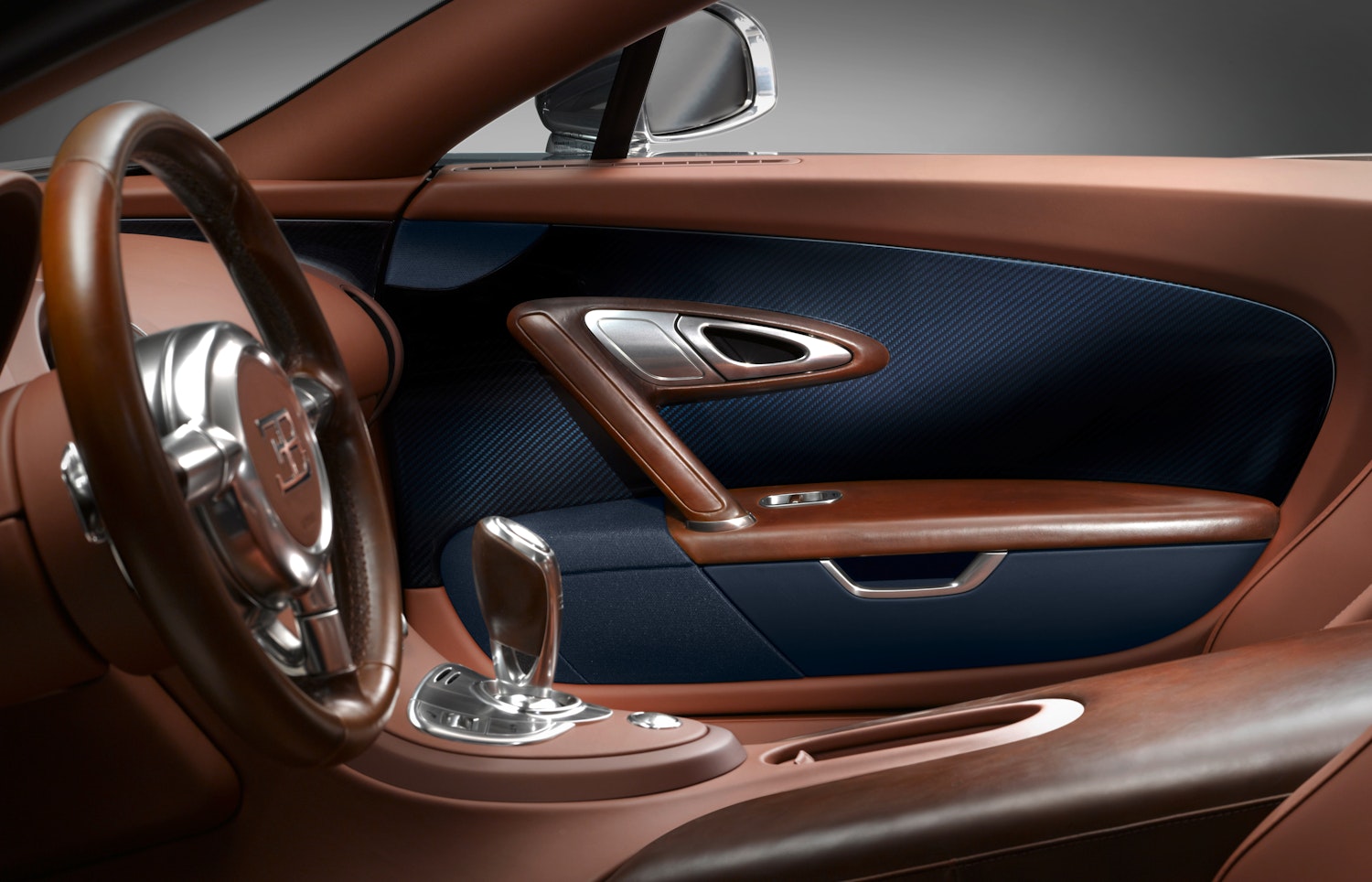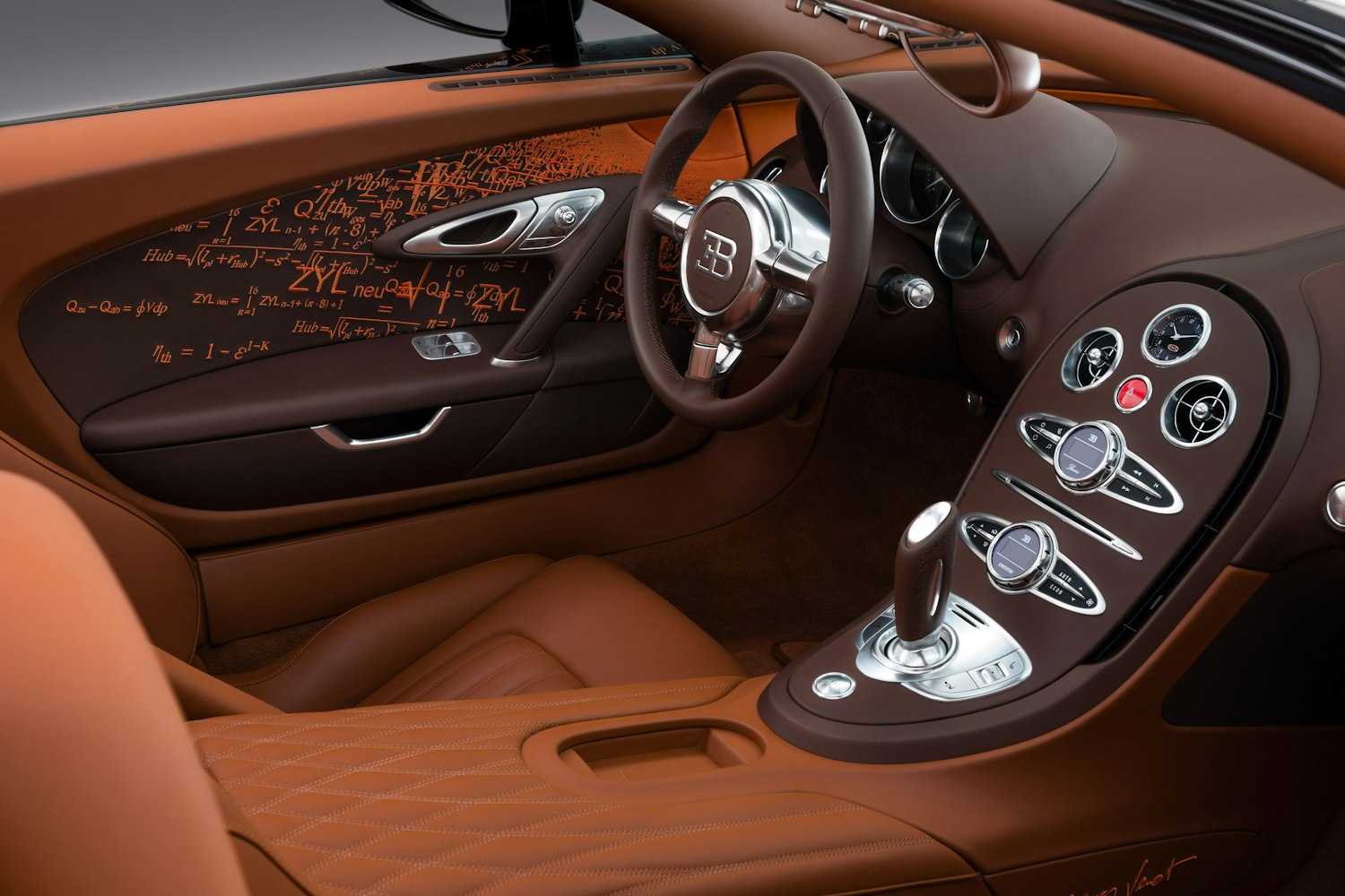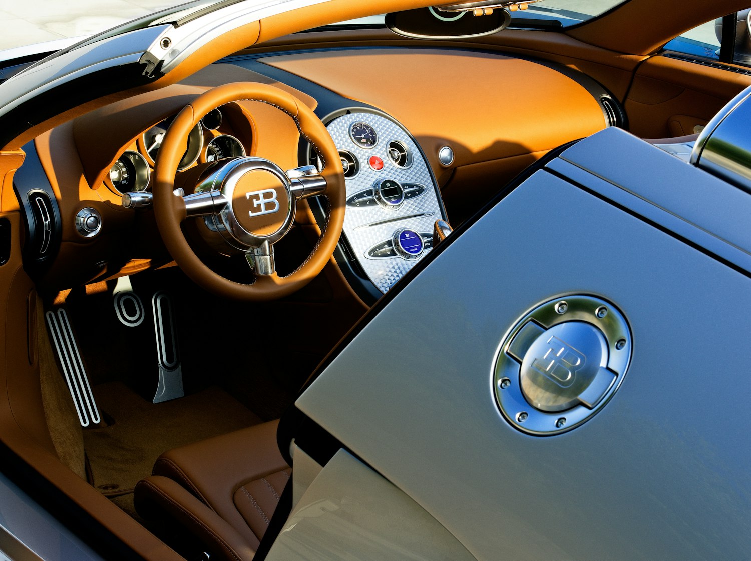El interior del Bugatti Veyron 16.4 fue concebido para demostrar que un hypercar podía ser extremo sin renunciar a la elegancia y la ergonomía. Bugatti apostó por un habitáculo de apariencia limpia, materiales nobles, superficies precisas y mandos intuitivos, alejándose del exceso visual innecesario. El conductor se encontraba frente a una instrumentación clara, presidida por un gran cuentarrevoluciones, un velocímetro dominante y un indicador específico de potencia del motor, algo tan exclusivo como representativo de la naturaleza del modelo. Cuero fino, aluminio pulido, acabados artesanales y una atmósfera sobria consolidaron una cabina pensada para el lujo real, no para el espectáculo vacío
